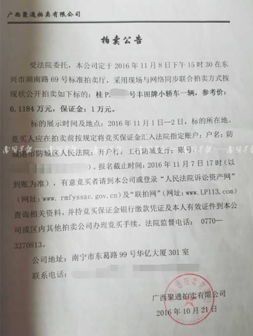 去年,南寧市民盧先生參與防城港市防城區人民法院的一起司法拍賣,沒想到拍到卻是一輛已經被強制報廢的車輛。