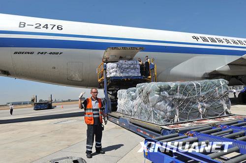 中國國際貨運航空公司飛行部總經理趙爍說,載著95噸救援物資的包機經停美國洛杉磯,兩班機組人員換崗後,又立即起程穿越赤道,最後抵達聖地亞哥,為智利災區人民運來了1萬條毛毯、700頂帳篷、2臺500升凈水設備,以及100臺2.8千瓦的汽油發電機。這是智利接受的來自最遙遠國家的人道主義救援物資。