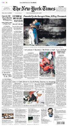 美國《紐約時報》頭版:大地震襲中國,數千人遇難