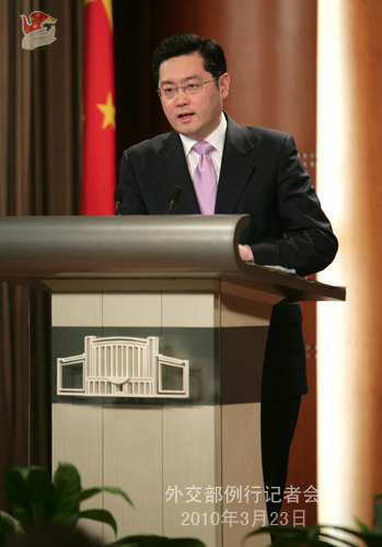 2010年3月23日,外交部發言人秦剛舉行例行記者會。答問如下。