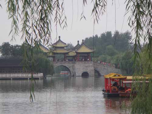 揚州西湖稱“瘦”,究其美,一為布局曲折多變,左一石右一橋,或廳或臺總以為“山窮水盡”,倏而又“柳暗花明”。瘦西湖門廳首先如屏障,將諸景遮掩,轉而入水面兩丈余寬的“長堤春柳”,花雨柳煙拂面,進而入徐園,亭臺石橋,直到虹橋,前方景致無限,古人說“揚州以園林勝”,瘦西湖的濱水園林群落可謂是中國首屈一指。徐園、月觀、釣魚臺、風亭、琴室、棋室、白塔、蓮性寺、鳧莊、熙春臺等等無不構思奇巧,立意、造型、設計均不相同,各園各景都遙相借景,每窗每水,都是一幅新畫。瘦西湖之美離不開唐代杜牧名句:“二十四橋明月夜,玉人何處教吹簫。”如今,二十四橋已重立瘦西湖,再現當年意境,而湖上其它各種大橋小橋,亦各有欣賞情趣。湖中心的五亭橋,橋上五亭如蓮花盛開,橋下有洞15個,大小不同,洞洞相通,相傳中秋之夜,十五橋洞的水中各有一輪明月爭輝,加上天上一個,便成了“十六圓”了。揚州乾隆水上遊覽線“十里碧波,二十四景,它像一條曲折迤邐的飄帶,綴連著一串閃光的珍珠。