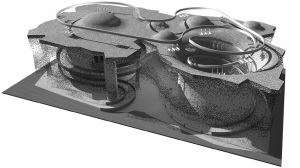 瑞士館的外圍是巨大的帷幕,參觀者可以從帷幕的任何一處進入館內一層的城市區。帷幕的每一部分都能獨立產生和儲存能量,並以LED燈的形式將其利用。帷幕可以與展館周圍的能量,如太陽能或者照相機閃光燈產生的光能發生反應,從而發出閃光。