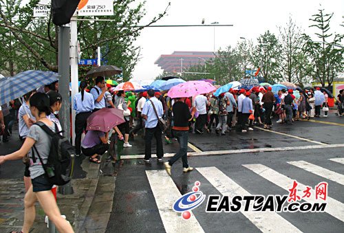 6號門入口外的志願者服務站站長汪愛華則從專業服務人員的角度為記者分析了入園人數爆棚的現象,她認為上海居民手中世博大禮包6月票的時限將近、外地遊客報旅行社早已定好時間以及海外遊人數量的增加是主要客觀原因,而人們不約而同地認為“雨天人少我們快去”則是出于主觀。“大雨澆不滅遊人的熱情,只是大家湊巧想到了一起而已。”