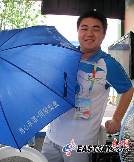“需要注意的是,這些藍色的愛心傘只能在園區外使用,並且用後必須歸還,人們可以選擇就近的志願者崗亭還傘,借傘時需要登記姓名、手機號碼並向志願者發一則短信以供確認。”汪愛華表示,目前為止幾乎所有外借的雨傘都被保存完好地歸還了,“人們的素質的確提高不少”。