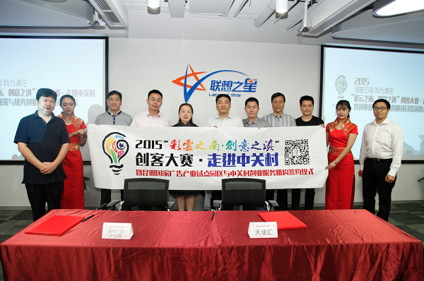 2015年9月24日,由雲南省工商行政管理局主辦,昆明國家廣告產業試點園區管理委員會與聯想融科雲南公司承辦的2015年“彩雲之南,創意之滇”創客大賽走進中關村主題活動,暨昆明國家廣告產業試點園區創業政策與優秀創業項目路演推介會,在中關村創業大街聯想之星隆重舉行。