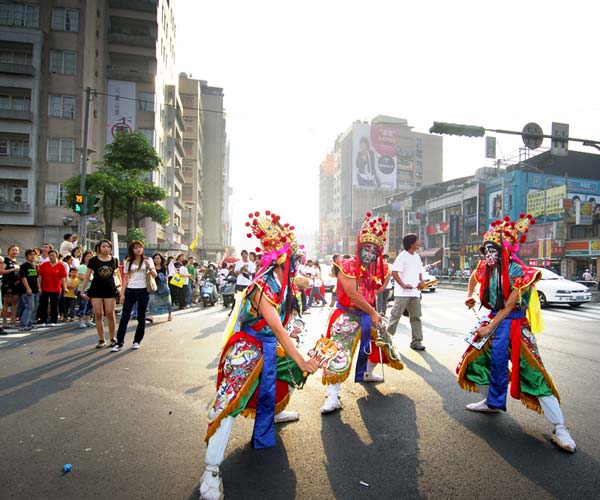 The pilgrimage from Dajia's Jhenlan Temple takes place during the third lunar month. All sorts of festive activities are arranged at this time, including puppets and theater performances, displays of embroidered banners, float parades, dragon and lion dances, and other events as the procession passes through Changhua and Yunlin counties, and proceeds to Fongtian Temple in Singang, Chiayi County. Many devotees walk the whole trip, which lasts eight days and seven nights.