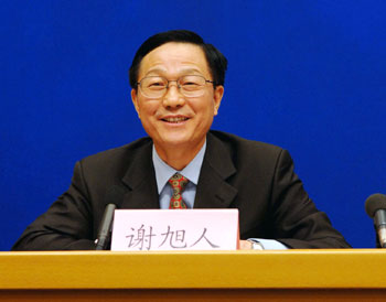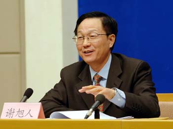 Xie Xuren, director of the State Administration of Taxation, gives a press conference sponsored by the State Council Information Office, Beijing, Jan.17,2006. [Xinhua Photo]