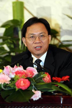 Renowned economist Lin Yifu, also member of the Tenth National Committee of the Chinese People's Political Consultative Conference (CPPCC), addresses the media during a press conference on the 11th Five-Year Plan for National Economic and Social Development held by the CPPCC National Committee in Beijing March 7, 2006. [Xinhua Photo]