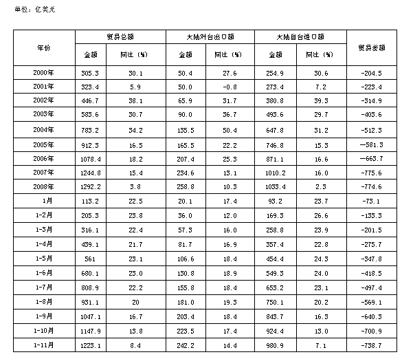 兩岸貿易統計表(2000年—2008年)