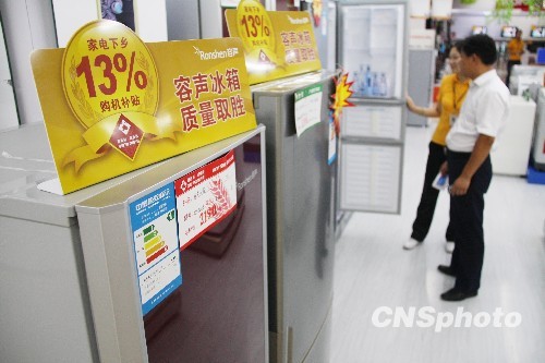 9月7日,據國家統計局相關數據顯示:今年二季度,家電行業運行部分指標出現好轉:利潤總額同比上升11.19%,反彈較為明顯;固定資產投資總額同比上升27.10%,增速平穩。據介紹,今年家電行業“政策市”特點顯著——陸續出臺的家電下鄉、節能產品惠民工程、以舊換新三大政策成為市場主要拉動力。 中新社發 江蘇-徐瑞平 攝