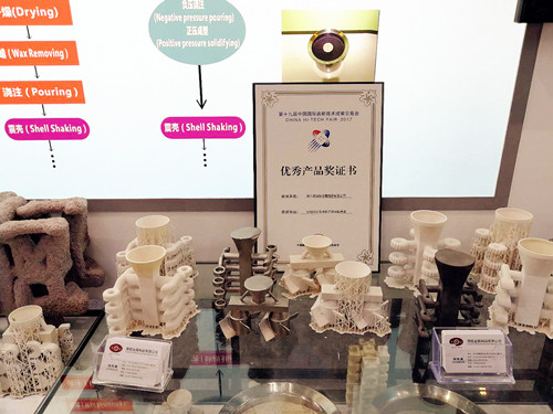 連雲港臺資企業---連雲港源鈺金屬制品公司作為連雲港市唯一獲邀參展企業,首次亮相高交會,展位位于最大的1號館:“信息技術與產品展 ”主題展館。本屆高交會上,連雲港源鈺金屬制品公司帶來了3D打印技術在精密鑄造產品中的解決方案——採用3D打印殼模之快速鑄造法、負壓澆鑄正壓成型技術;其中3D打印殼模產品等更彰顯連雲港源鈺金屬制品公司的技術實力。期間,吸引了眾多觀眾駐足、交流,紛紛對公司優秀的產品及專業的技術介紹給予了高度肯定。會後,組委會傳來喜訊:連雲港源鈺金屬制品公司高交會現場展出的“採用3D打印殼模之快速鑄造法”經過層層評選,獲得了由高交會組委會頒發的優秀產品獎。