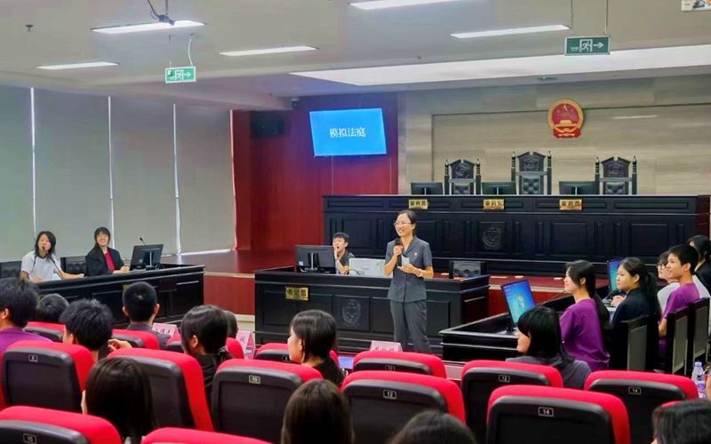 活動緊扣“零距離”體驗核心,精心設置了遞進式、沉浸式、互動式環節:一是實地探訪,感知司法莊嚴。學生們依次參觀了訴訟服務大廳、執行指揮中心、審判庭、圖書館及黨史長廊,直觀感受智慧法院建設成就與司法工作的嚴謹規范。二是庭審觀摩,領略法治實踐。通過旁聽典型案件審理,學生們切身感受了法庭的莊嚴氛圍與訴訟程序的公開透明,加深了對審判實務的理解。三是模擬法庭,沉浸角色體驗。改編真實案例,由學生身著法袍、律師袍等,親身體驗從法庭調查到辯論終結的完整流程,極大激發了參與熱情與學習興趣。四是互動研討,啟迪法治思維。在案情分析與判決推測環節,學生們積極思考;隨後的法律知識問答寓教于樂;法官的專業點評與深入交流、答疑解惑,升華了活動內涵。