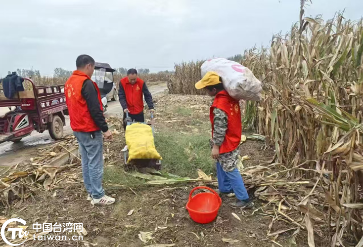 駐馬店市涉臺係統工作人員深入秋收一線幫助臺胞收玉米。(中國臺灣網發)