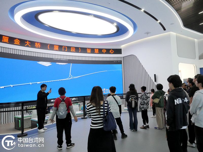 金門青少年在廈金大橋(廈門段)智慧中心內參觀。(中國臺灣網發)