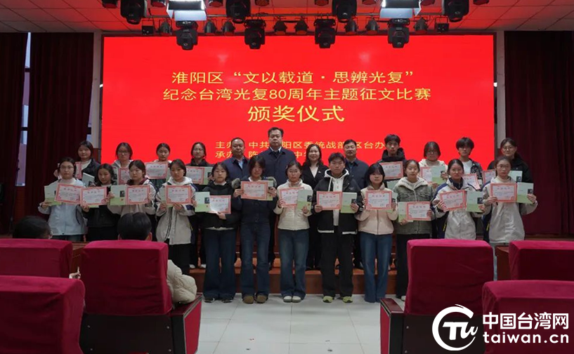 中國臺灣網12月12日訊 12月8日,周口市淮陽區“文以載道·思辨光復”紀念臺灣光復80周年主題徵文比賽頒獎儀式在陳州高中舉行。淮陽區臺辦主任李巧靈出席活動,獲獎學生、指導教師及200名學生代表參加活動。活動由陳州高中黨總支書記牛世傑主持。