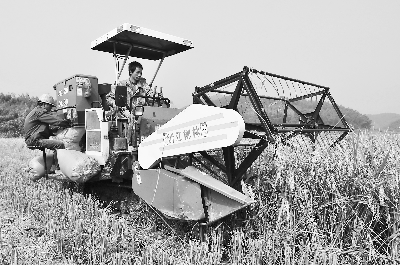 8日,我省閩臺農業合作項目——引種栽培株型高雄145號水稻喜獲豐收,在南平市延平區王臺鎮元圩村農民鄒湖源的17畝試種田里,收割機收割著一穗穗沉甸甸、金燦燦的稻谷,畝產平均可達456公斤。通訊員 詹國兵 胡信果 攝