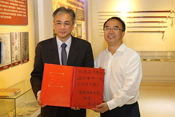 山東英才學院黨委書記、校長夏季亭,副校長張宗勝、張興虎,交流處副處長王寧等陪同考察並進行了座談、續約。