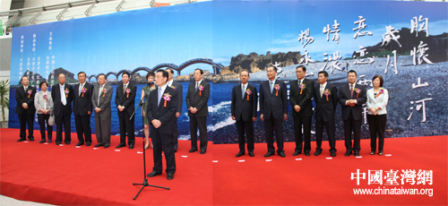 連戰在致辭中讚揚了楊永山攝影作品的高水準和藝術性,他說,楊永山的攝影作品記錄了兩岸山川之美,也見證了兩岸和平之旅的歷史進程。