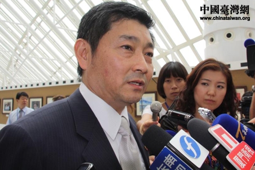 臺灣攝影家楊永山正在接受記者採訪(中國臺灣網 胡珊珊 攝)
