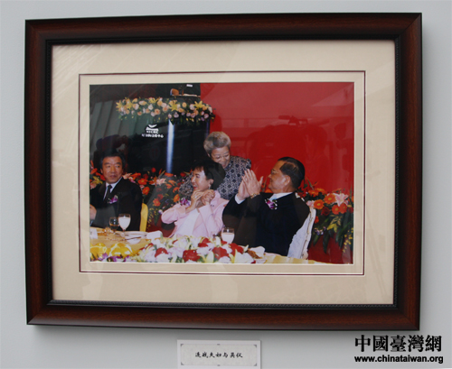 楊永山最滿意的作品《連戰夫婦與吳儀》(中國臺灣網 張蕾 攝)