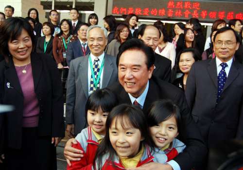 11月27日,海協會會長陳雲林來到東莞,調研當前臺資企業生產經營情況。陳雲林表示,相關部門對臺商的呼聲非常重視,呼吁臺商樹立信心,積極應對國際金融危機帶來的困難。圖為陳雲林在東莞參觀臺商子弟小學。(中新網)