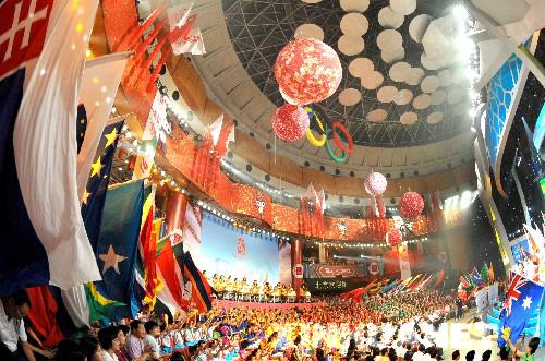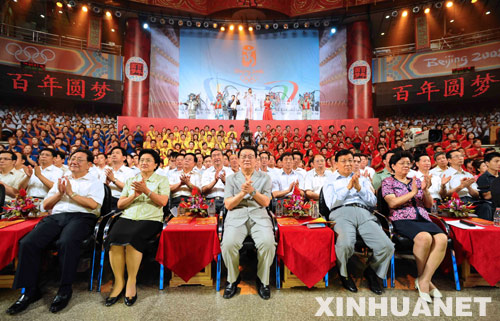 《百年圓夢——迎2008北京奧運會文藝晚會》在北京舉行 7月29日,《百年圓夢——迎2008北京奧運會文藝晚會》在北京舉行。 新華社記者 馬佔成 攝