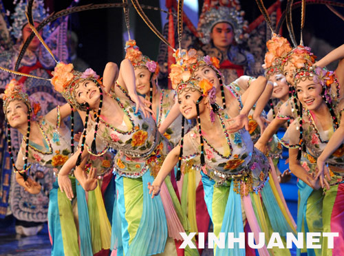 7月29日,演員在表演舞蹈。當日,《百年圓夢——迎2008北京奧運會文藝晚會》在北京舉行。 新華社記者 馬佔成 攝