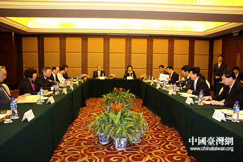 海協會專家團與海基會食品衛生專家團今天上午在北京就問題奶粉事件和兩岸建立食品安全溝通聯係機制等事宜舉行座談(李徽 攝)