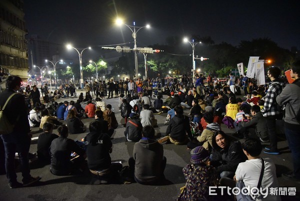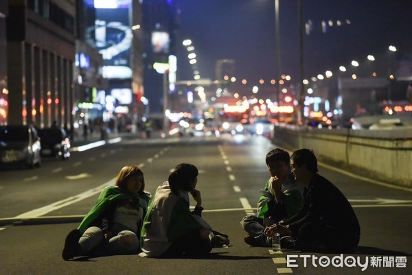 抗爭者坐在馬路上。(圖片來源:臺灣“東森新聞雲”)