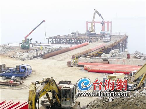 考察團上了水頭碼頭,只見碼頭旁邊的大片空地上正在火熱施工,這兒就是金門招商項目之一水頭港經貿園區的一部分。