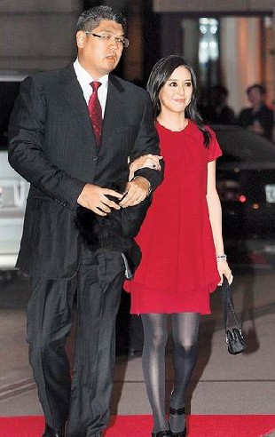 藍營“立委”丁守中轉述,連勝文不能接受槍手“馬面”誤擊說。右為連妻蔡依珊
