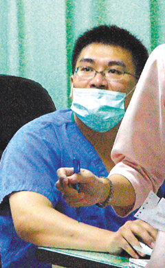 陳水扁女婿趙建銘去年三月離開臺大醫院後,轉至臺南縣新樓醫院麻豆分院看診,近日傳出醫療糾紛,圖為他平日看診情形。資料照片/謝玲玉攝