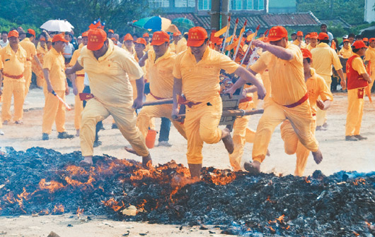 桃園縣大園鄉福海宮舉辦“過火”儀式。 來源:臺灣《聯合報》