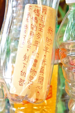 渴求親情▲雲林縣古坑鄉偏遠小學華南小學的飲料瓶心願樹,讓全校70個小孩放上自己的願望,其中有個小女孩寫下“希望今年禮物是媽媽的母愛,剩下的都不需要了”,令人鼻酸。圖片來源:臺灣《中國時報》