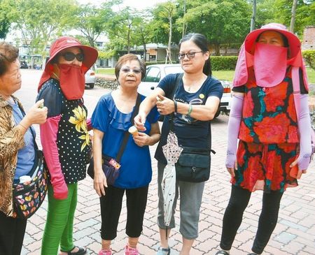 桃園龜山區民眾來臺南玩,有的人全副武裝防蚊子叮咬,穿短袖的也有噴防蚊液及貼防蚊片,做好登革熱防疫準備。來源:臺灣《聯合報》