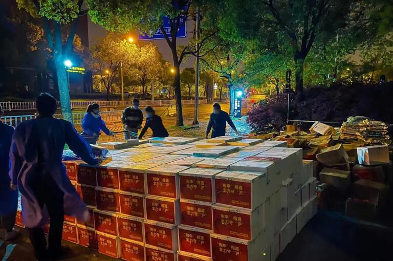 湖北省荊州市9000余份愛心援滬物資近日抵達上海。這批物資包含蝦稻米、小胡鴨、八寶飯、牛肉醬和蔬菜包等品種。