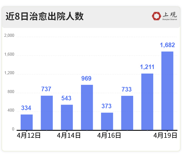 4月19日,1682名確診病例治愈出院,25411名無症狀感染者解除集中隔離醫學觀察。