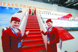 昨天,首架國產大飛機——C919大型客機樣機也現身成就展,4位美麗的空姐分別站在大飛機鋪著紅毯的舷梯上下,禮貌地迎接著每一位參觀者。