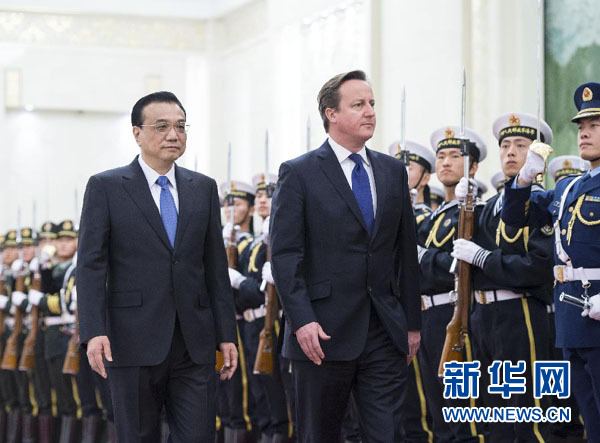 12月2日,中國國務院總理李克強在北京人民大會堂北大廳舉行歡迎儀式,歡迎來華進行正式訪問並出席中英總理年度會晤的英國首相卡梅倫。新華社記者 王曄 攝