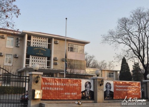 組圖:曼德拉逝世 南非駐華使館降半旗致哀