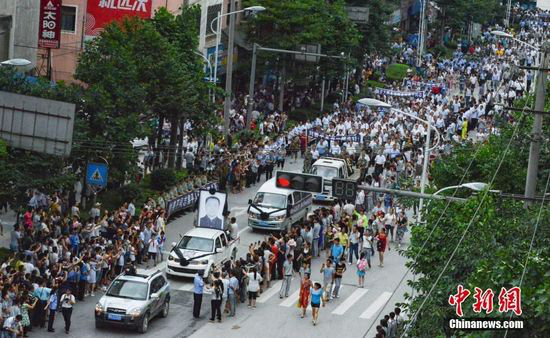 貴州黎平,萬人送別在抗洪中獻身的村支書劉善平。(圖片來自中新網)