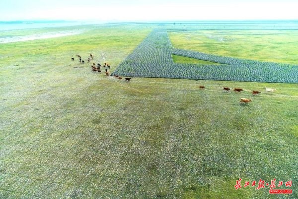 如今灘上草長鶯飛、牛羊成群,儼然是個人造“生態濕地”。通訊員陳宇提供