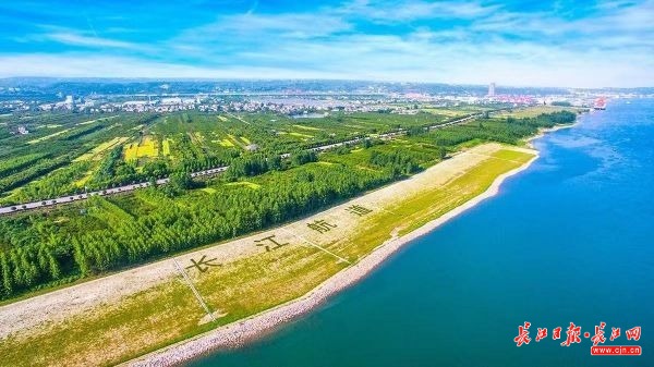 長江中遊舊時灘涂實施生態護灘工程後,如今綠意盎然、風景如畫。通訊員陳宇提供