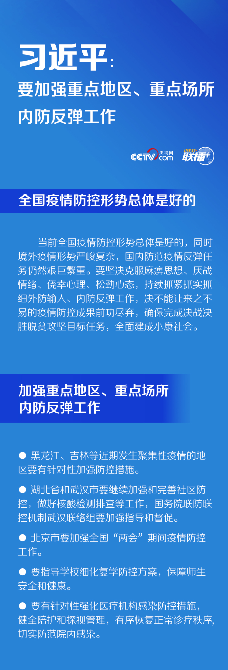 聯播+ | 習近平:要加強重點地區、重點場所內防反彈工作