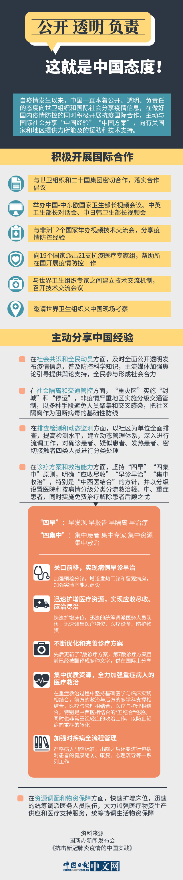 自疫情發生以來,中國一直本著公開、透明、負責任的態度向世衛組織和國際社會分享疫情信息,在做好國內疫情防控的同時積極開展抗疫國際合作,主動與國際社會分享“中國經驗”“中國方案”,向有關國家和地區提供力所能及的援助和技術支持。