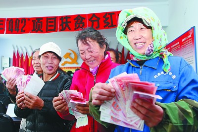 朝陽北票市臺吉鎮坤頭波羅村貧困戶分紅。 仇一軍攝