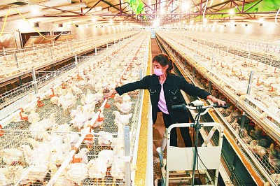 朝陽市朝陽縣榮基畜牧養殖服務專業合作社社員管理自動化雞舍。仇一軍攝