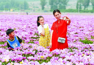 遊客在朝陽市大平房鎮欣賞盛開的芍藥花。仇一軍攝