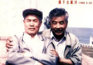 兩個老戰友:《我是一個兵》詞曲作者陸原(左)、岳侖1992年在北戴河合影。