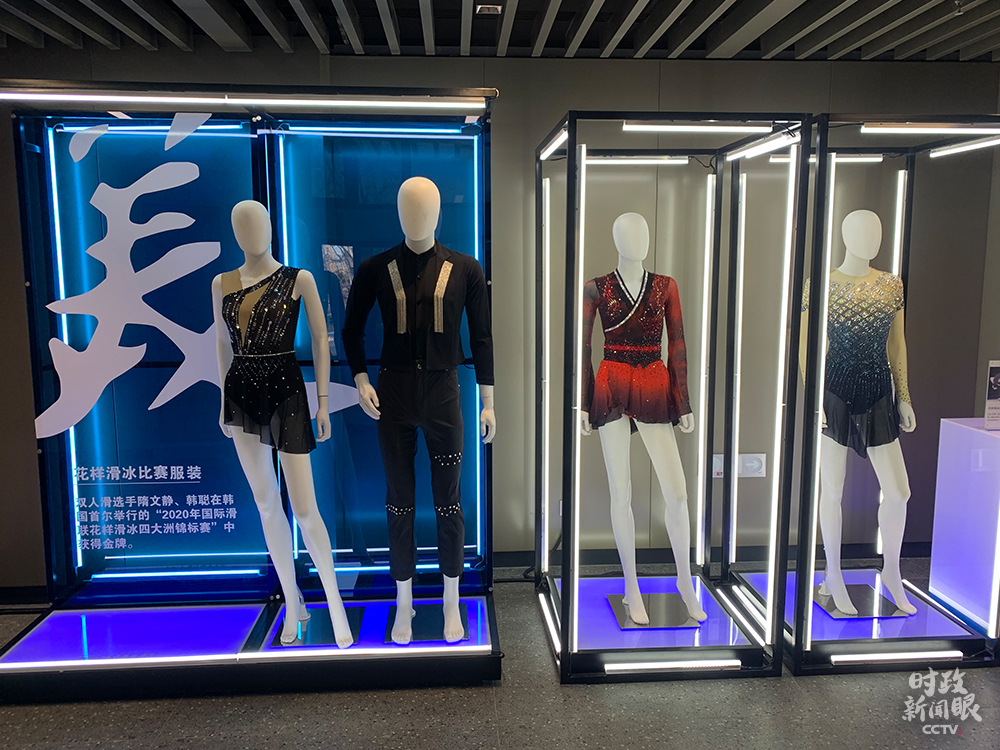 △左邊是花樣滑冰雙人滑選手隋文靜、韓聰的比賽服,兩位選手在“2020年國際滑聯花樣滑冰四大洲錦標賽”中奪冠。(總臺央視記者范一鳴拍攝)